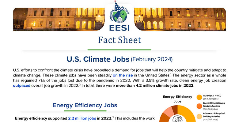 While policymakers are EESI’s core audience, our resources are also extensively used by the media, federal climate policy stakeholders, state and local leaders, and the public. All of EESI’s resources are freely available online. To receive updates about our latest briefings, articles, fact sheets and more, subscribe to our biweekly newsletter, Climate Change Solutions.