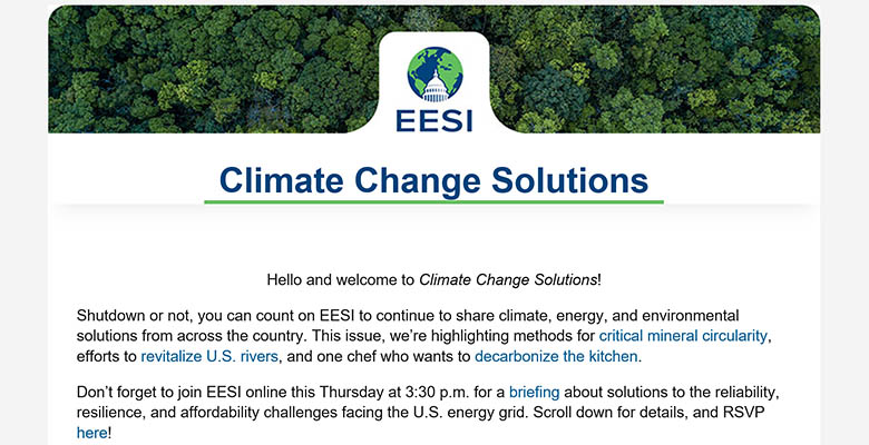 EESI publishes several newsletters that feature our latest educational resources and updates about our impact on federal climate policy.