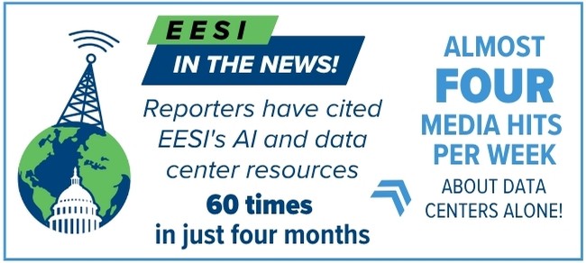 Artificial intelligence (AI) and the spread of data centers are making headlines. Congressional staff have asked EESI about these issues, so we have prioritized the development of briefings, articles, and other educational resources to answer their questions. More than 400 people watched EESI’s recent briefing about the energy and environmental implications of AI, which featured remarks from Rep. Chuck Fleischmann (R-Tenn.) and Sen. Brian Schatz (D-Hawaii).