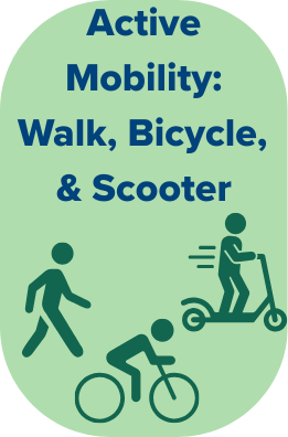 Active mobility describes human-powered movement, such as walking and cycling, while micromobility includes the use of electric-assist options like electric bicycles (e-bikes) and e-scooters. Both active mobility and micromobility provide a host of benefits for individuals, communities, and the climate. People get exercise, spend time outside, and can communicate and interact with their environment; businesses have more visibility; and all these forms of transportation use minimal or no direct fossil fuel energy. Communities and decision-makers can encourage active mobility by investing in infrastructure that makes these forms of transportation safe, accessible, and enjoyable. For example, dedicated bike lanes, shade trees, rain gardens along streets, and well-maintained sidewalks all make active mobility and micromobility more accessible.